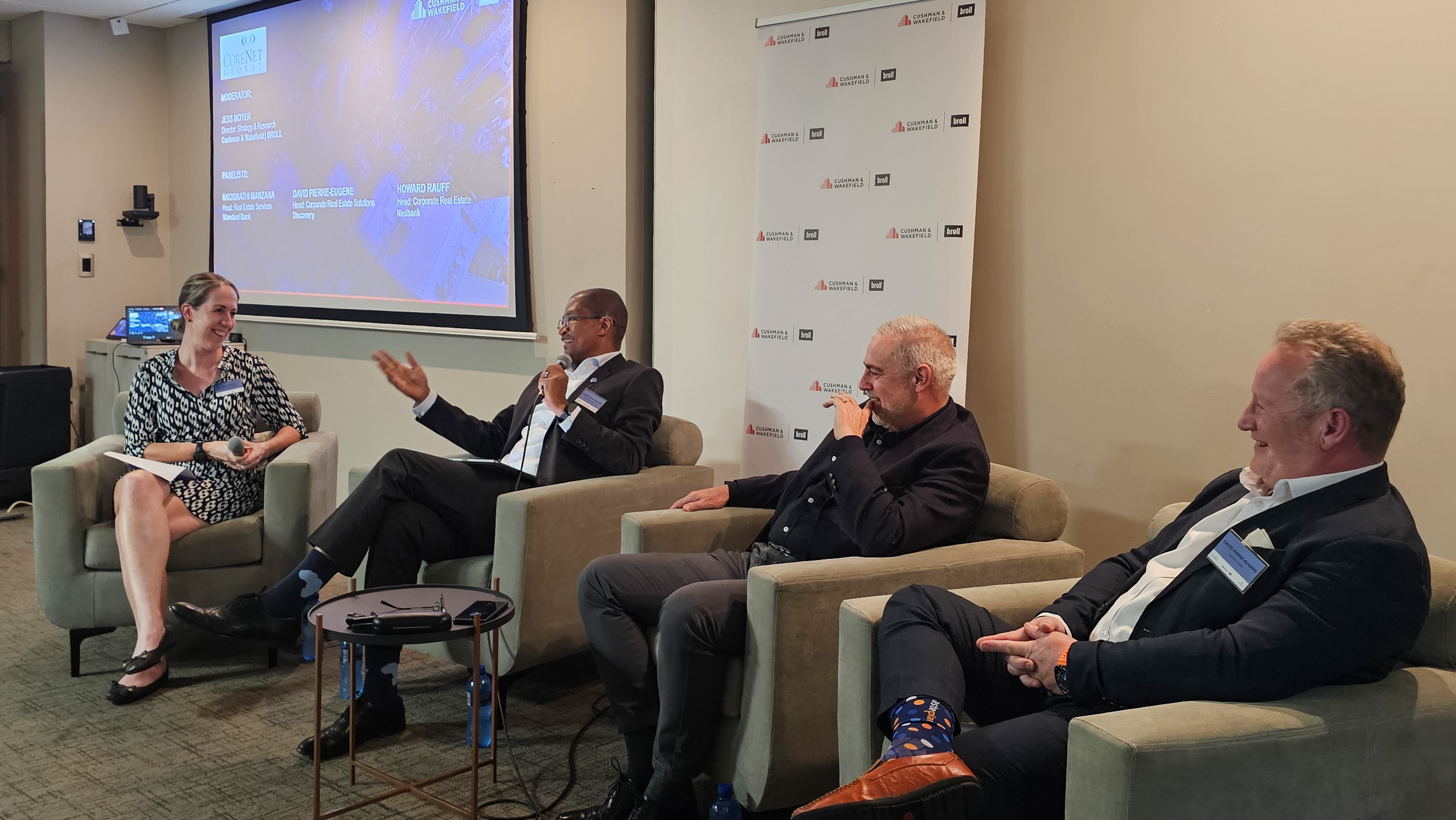 Moderated by Jess Moyer of Cushman & Wakefield | BROLL, the panel featured corporate real estate leaders from three major property owners: Nkosinathi Manzana (Standard Bank), Howard Rauff (Nedbank), and David Pierre-Eugene (Discovery).